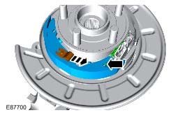 4. CAUTION: One side of the bearing is magnetic. The magnetic side is identifiable by the application of a matt black finish. The magnetic side must face towards the inboard side of the vehicle. Before fitting the bearing, make sure the magnetic face is clean. The bearing must be handled with extreme care.