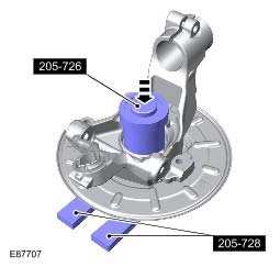 22. Position the wheel knuckle assembly in a press and support on special tools.