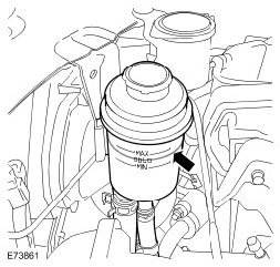 1. Clean power steering fluid reservoir around the filler cap and fluid indicator.
