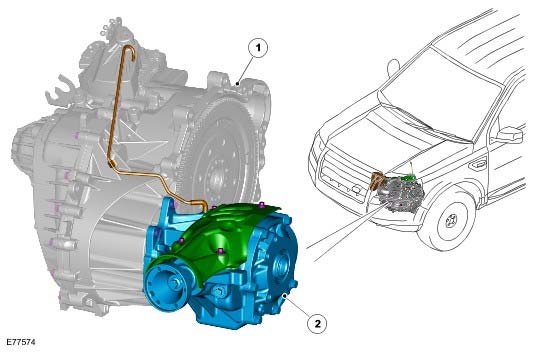 The power transfer unit is located at the rear of the engine and is attached directly to the transmission casing and to the engine cylinder block via a bracket. The power transfer unit is a common unit between the petrol and diesel engine variants and also automatic and manual transmissions.