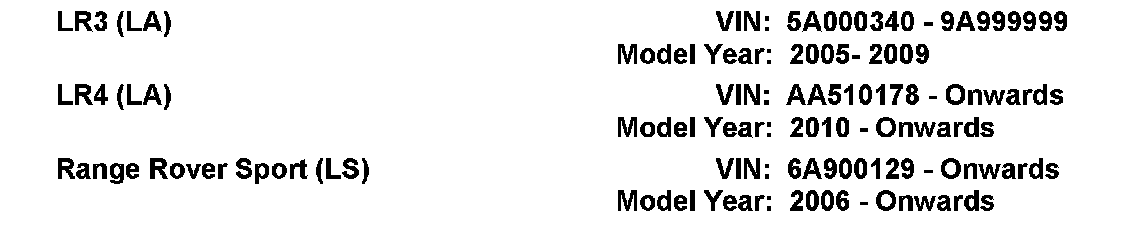 AFFECTED VEHICLE RANGE: