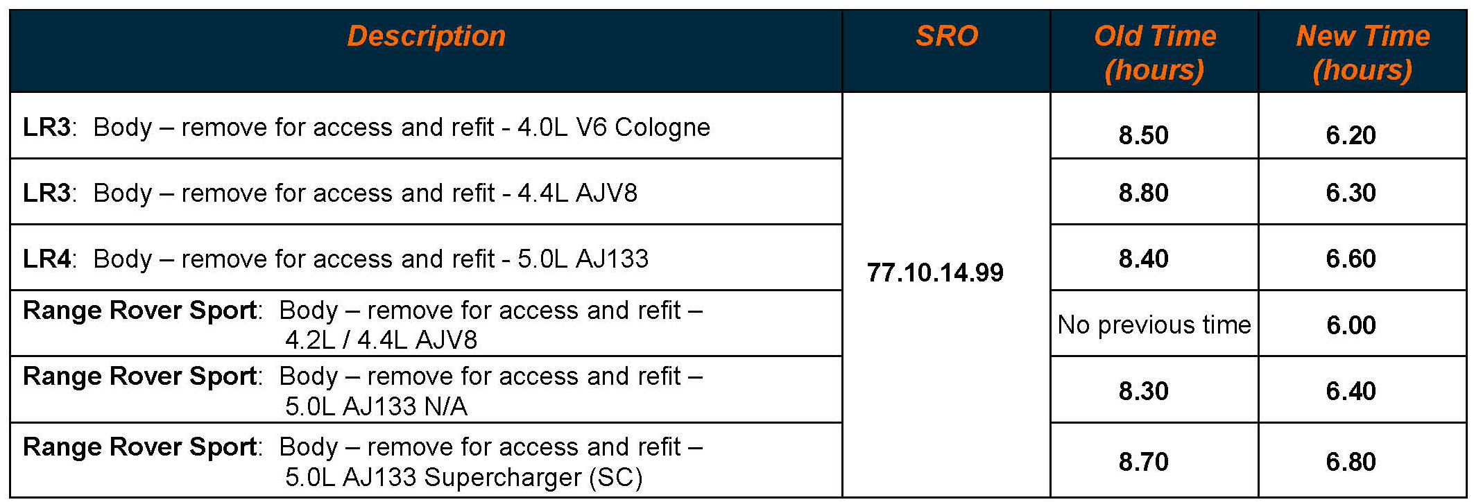 Associated repair times requiring body removal will also change.