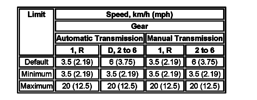 The target speed varies, between minimum and maximum values for each gear and transmission range, depending on driver inputs through the foot pedals. If the foot pedals are not operated, the ABS module adopts a default target speed.