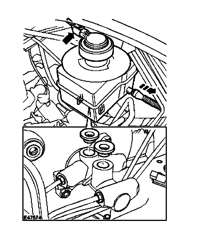 ^ Remove and discard 2 brake fluid reservoir seals.