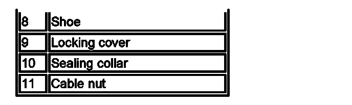 The brake cables consist of Bowden cables installed between the parking brake module and the drum brakes. Nuts, on the ends of the outer cables, secure the brake cables to the parking brake module and the backplate of the related drum brake. In each drum brake, the inner cable is located in the guide spring and connected to the brake shoe operating lever by a nipple on the end of the cable. In the parking brake module, the two inner cables are joined together via the force sensor and the spline shaft.