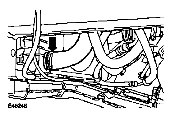 Release the clip and disconnect the radiator lower hose, allow the coolant to drain.