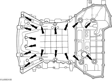 44. Evenly and progessively tighten the bolts in the sequence shown to 12 Nm (9 ft. lbs.)