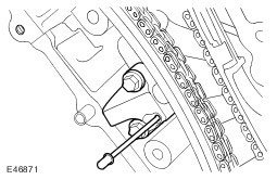 25. Depress the LH secondary timing chain tensioner piston