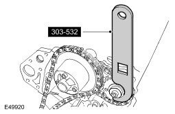 CAUTION: Using the special tool, apply force to the tool in a counter-clockwise direction, to tension the primary timing chain on its drive side