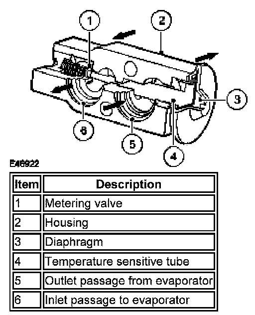 The temperature and pressure of the refrigerant leaving the evaporator act on the diaphragm and temperature sensitive tube, which regulate the metering valve opening and so control the volume of refrigerant flowing through the evaporator. The warmer the air flowing through the evaporator, the more heat available to evaporate refrigerant and thus the greater the volume of refrigerant allowed through the metering valve.