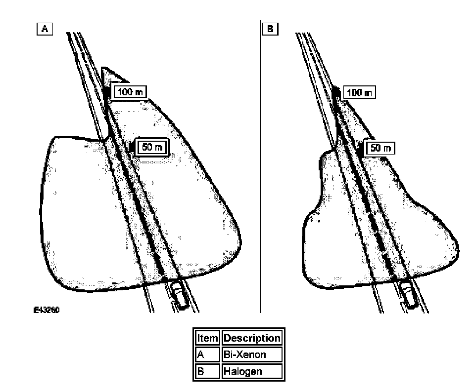 The cornering lamps are an optional feature designed to illuminate the direction of travel when cornering at low speeds. The design of the lens projects a spread of light from the vehicle at approximately 45 ° to the vehicle axis.