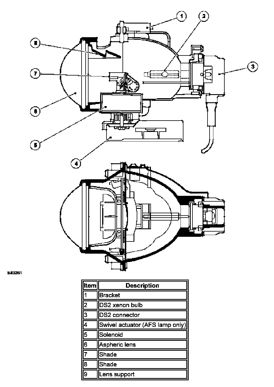 The reflector is curved and provides the mounting for the xenon bulb. The bulb locates in a keyway to ensure correct alignment in the reflector and is secured by pushing and turning to lock. The bulb has a two pin connector which is also a push and turn to lock fitting.