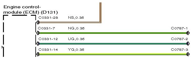The wire length (in millimeters) is displayed after the color and cross sectional area; for example, SR,0.35,480. In this example, the figure, 480 indicates the approximate position of the harness splice is 480mm from connector C2335.