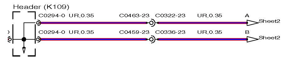 Crossed wires as illustrated above show an example of how a twisted pair of wires may be represented on the circuits.