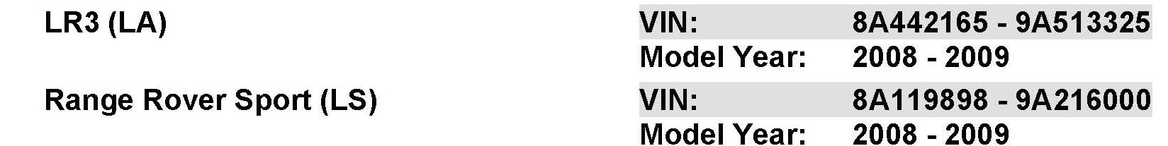 AFFECTED VEHICLE RANGE: