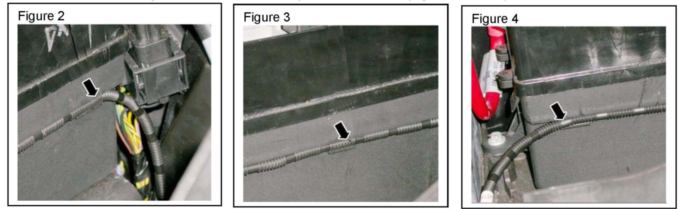 4. Secure the battery vent tube to the three clips in the fuse box. (Figures 2, 3, & 4)