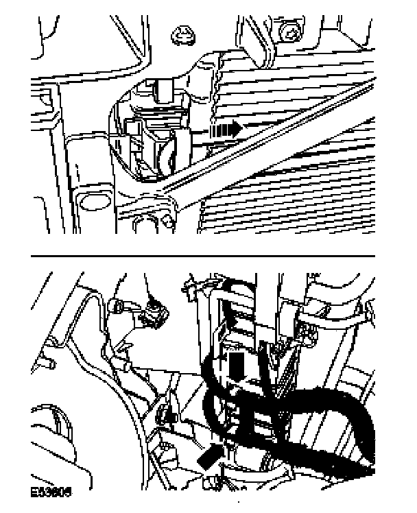 7. Release the LH radiator air deflector lower clip, position the deflector aside.