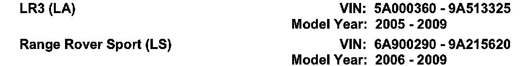 AFFECTED VEHICLE RANGE: