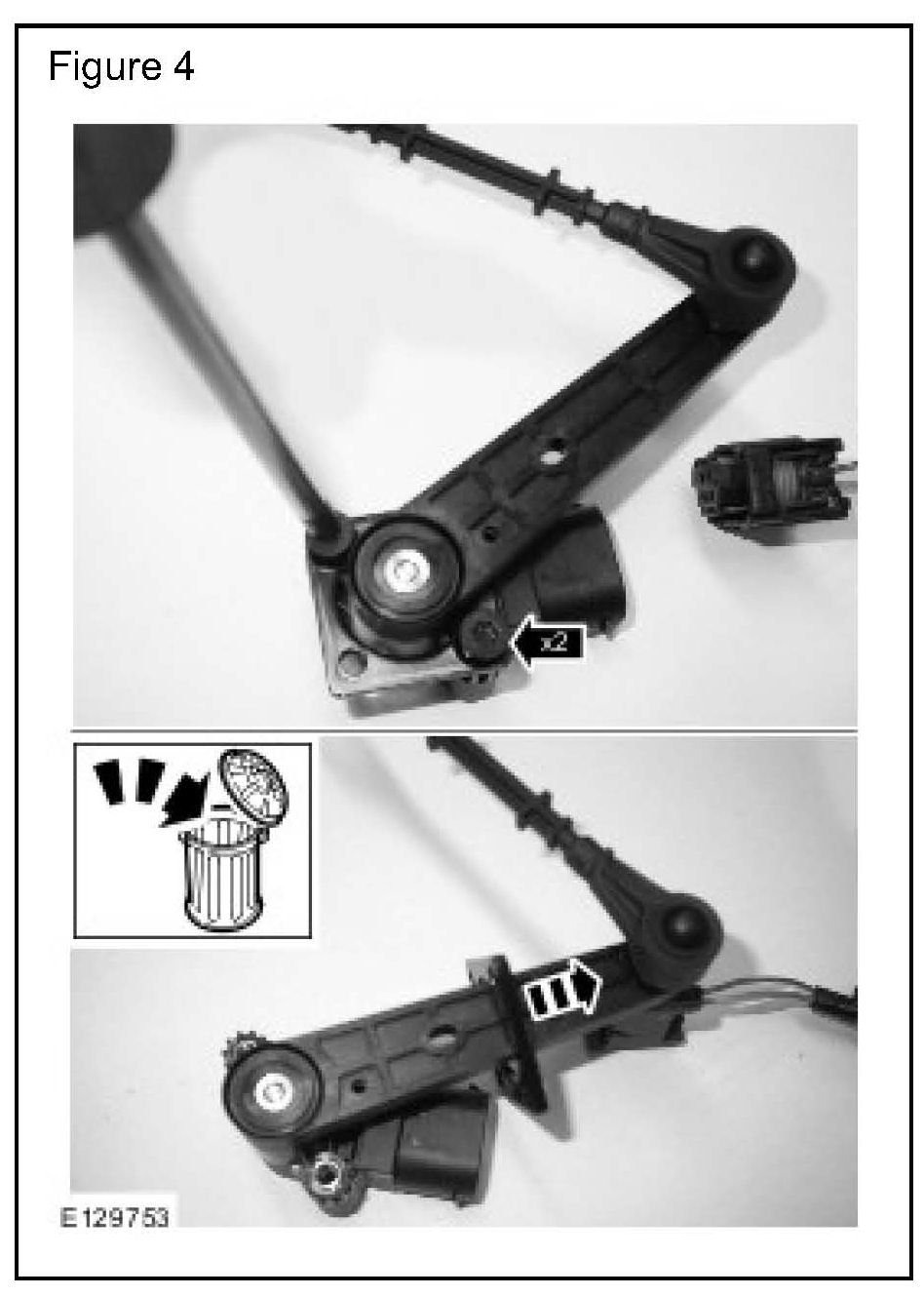 2. Remove the bracket from the new ride height sensor: (Figure 4)