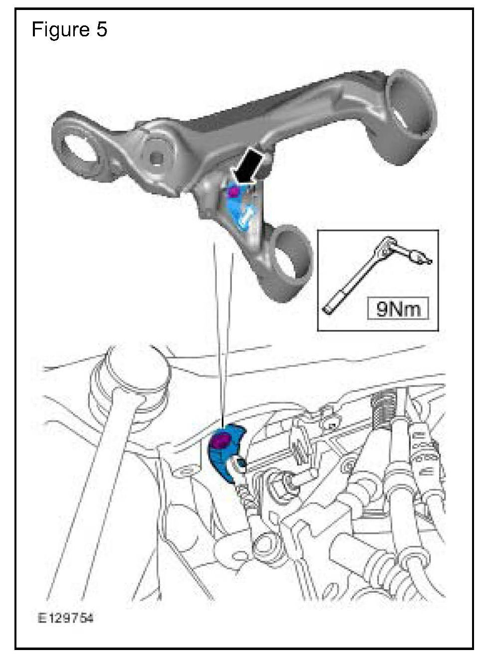 ^ Install the new sensor link pin to the upper arm. Tighten bolts to 9Nm (6.6lbf ft).