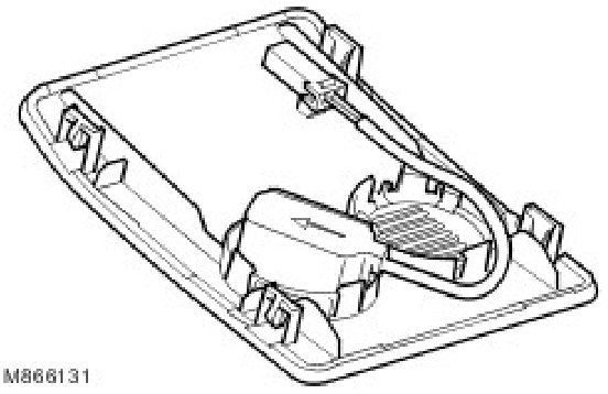 The microphone is located in the front interior lamp console. The standard, directional type microphone is connected to the Integrated Head Unit (IHU) and the navigation computer (if fitted) for voice recognition of the navigation system and the telephone. The microphone has an integrated noise suppression system for hands-free telephone use.