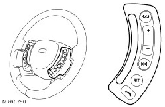 The steering wheel switches for the telephone system are located on the RH (right-hand) side of the steering wheel. The driver is able to use these switches for several phone related functions including: