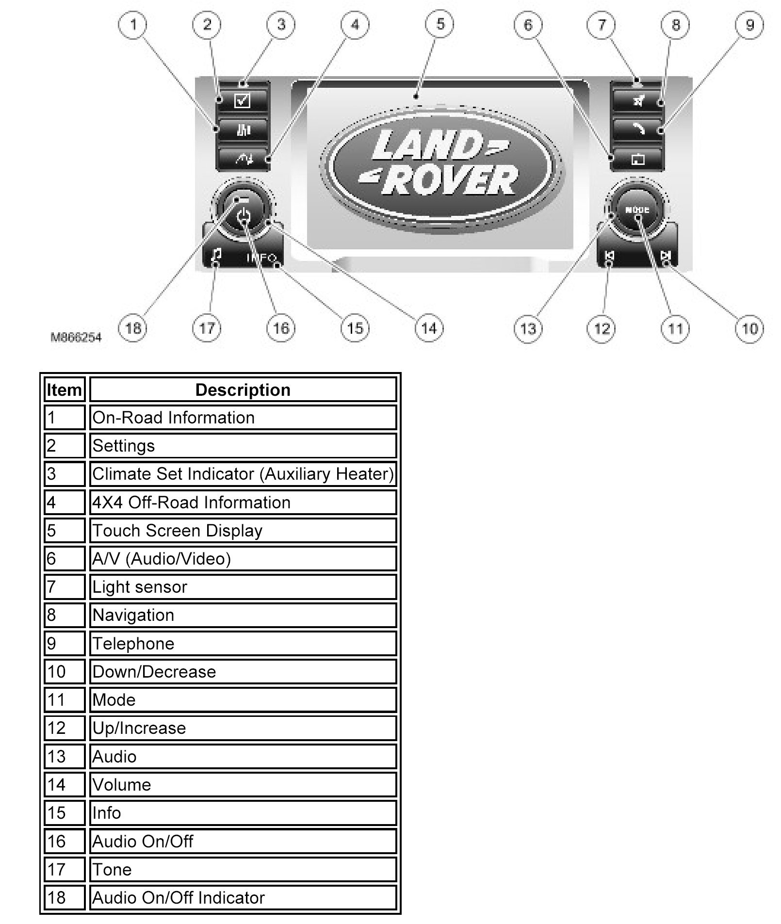 The TSD communicates with the Integrated Head Unit (IHU) on the MOST ring and provides the driver interface and driver display of the audio system. The TSD also provides driver display and control of the telephone, the rear view camera, the Venture Cam, the navigation system, the Traffic Message Channel and the rear seat entertainment.
