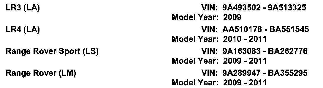 AFFECTED VEHICLES