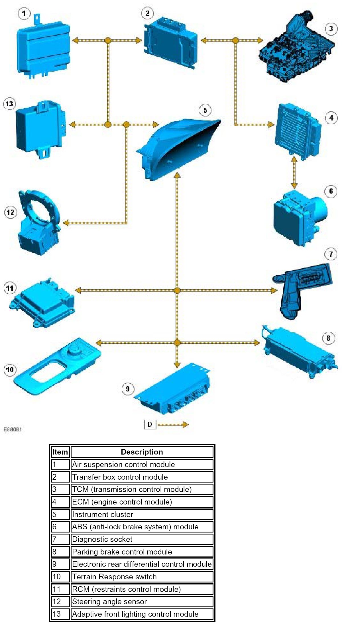 NOTE: D = High speed CAN (controller area network) bus