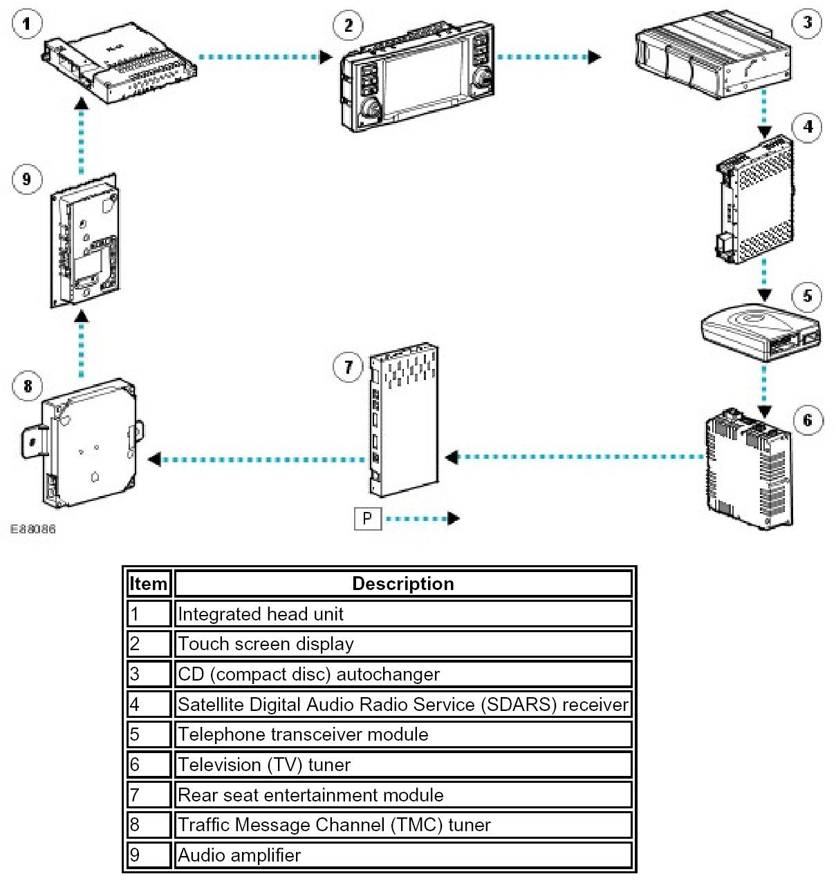 NOTE: P = Media Orientated System Transport (MOST) ring