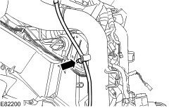 18. Secure the gearshift interlock cable to the in-vehicle cross beam.
