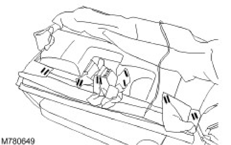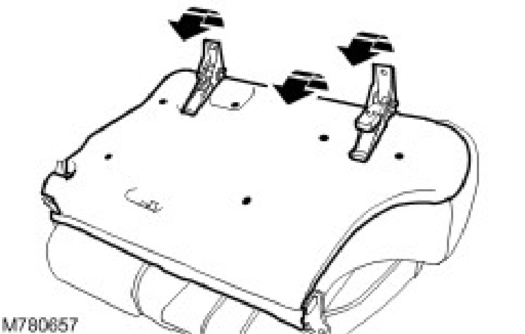 ^ Remove and discard the 25 rear seat cushion cover clips.