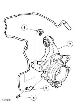 The wheel speed sensors each have a power supply connection and a signal connection with the ABS (anti-lock brake system) module. When the ignition switch is in position 11, the ABS (anti-lock brake system) module supplies power to the wheel speed sensors and monitors the return signals. Any rotation of the drive halfshafts induces current fluctuations in the return signals which are converted into individual wheel speeds and the overall vehicle speed by the ABS (anti-lock brake system) module.