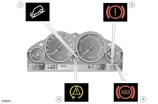 The ABS (anti-lock brake system) module monitors the yaw rate and lateral acceleration sensor for faults and can be interrogated using T4. If a fault is detected the ABS (anti-lock brake system) module stores a related fault code and sends a CAN (controller area network) signal to the instrument cluster to illuminate the DSC HDC and brake warning indicators. The instrument cluster also sounds a warning chime and displays a DSC fault message in the message center.