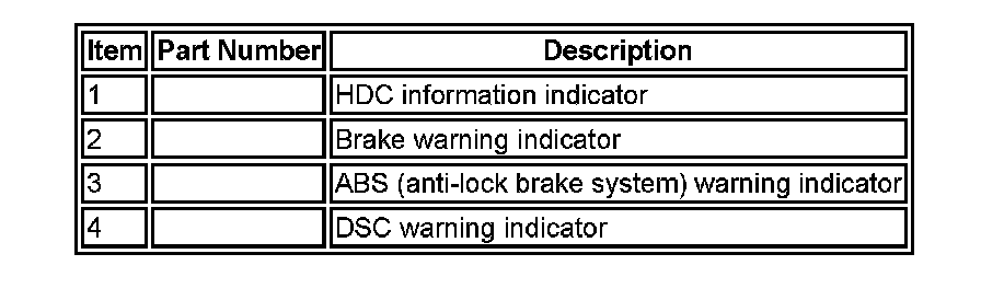 Operation of the HDC information indicator is controlled by a high speed CAN (controller area network) bus message from the ABS (antilock brake system) module to the instrument cluster.