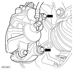CAUTION: LH side: Do not allow the brake caliper to hang on the brake pad wear warning sensor lead.