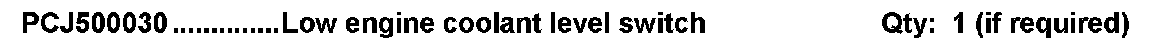 Low Engine Coolant Level Switch - Lower Level Service Part Availability