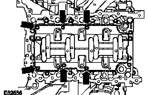 ^ Remove the crankshaft main bearing carrier retaining bolts in the indicated sequence.