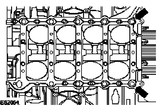 2. Apply a 2 mm (0.08 in.) bead of sealant to the cylinder block in the areas shown.
