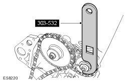 CAUTION: Using the special tool, apply force to the tool in a counter-clockwise direction, to tension the primary timing chain on its drive side.