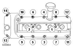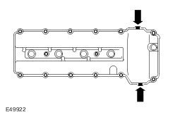 NOTE: Apply two beads of silicone gasket sealant as shown on the illustration. The application of the sealant must be 3mm diameter 12mm long. Install the valve cover immediately after applying the sealant. The cover should be fitted directly to the head without smearing the sealant or the seals.