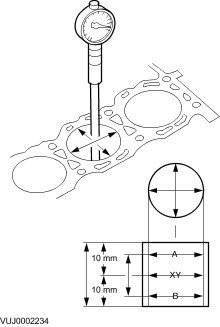 ^ If the measurement is out of the specified range, hone out the cylinder block or install a new block.