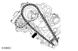 ^ Install the RH secondary timing chain tensioner and the secondary timing chain to the camshaft sprockets.