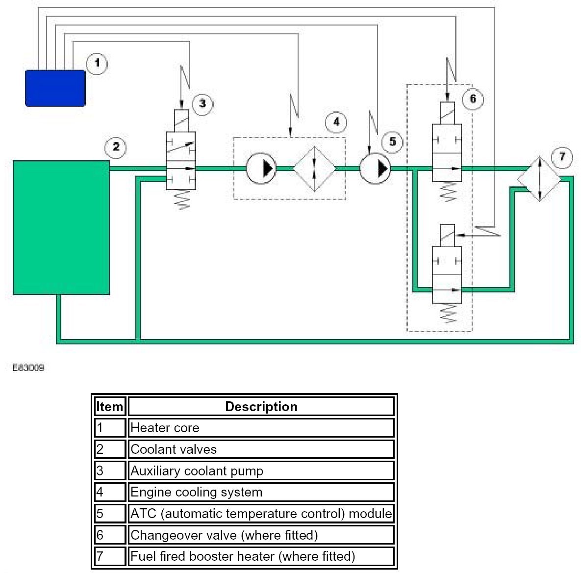 To determine the amount of heat required, in the form of coolant flow through the heater, the ATC (automatic temperature control) module compares the reference value with the heater temperature and incorporates a correction factor to compensate for changes of coolant flow rate with engine speed. From the resultant value the ATC (automatic temperature control) module determines the open duration of the coolant valve and outputs the appropriate control signal. On the automatic system, separate values and output signals are generated for each coolant valve to produce the individual temperature control for the LH (left-hand) and RH (right-hand) sides of the cabin.