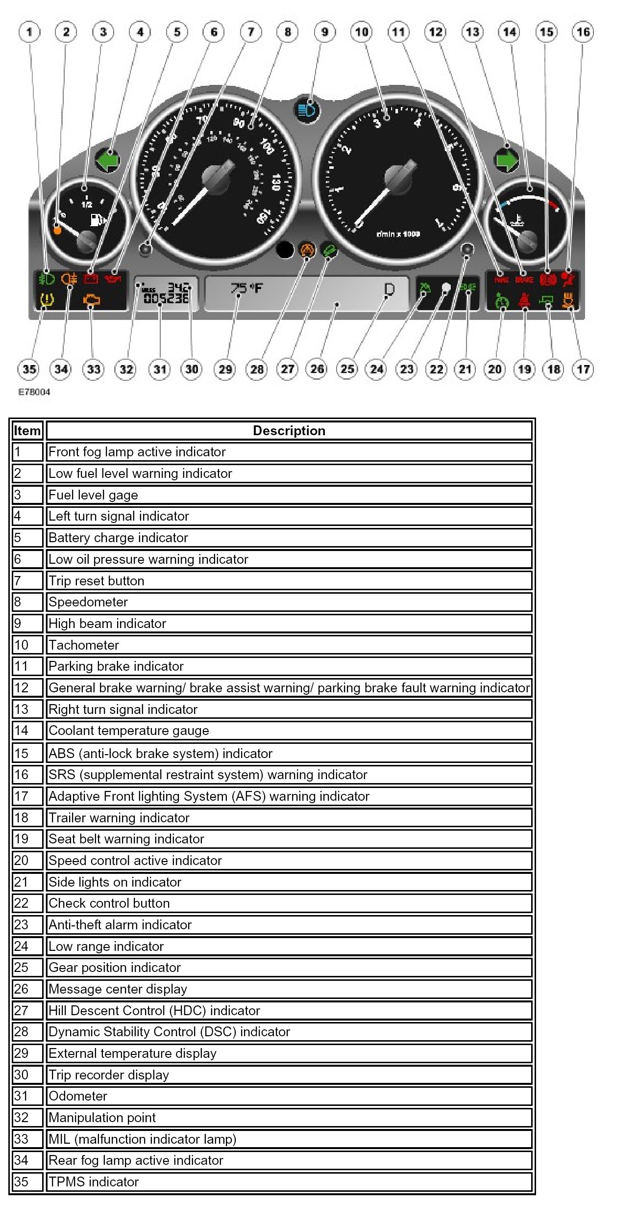 The instrument clusters fitted to all Range Rover models are similar and only differ in the following features: