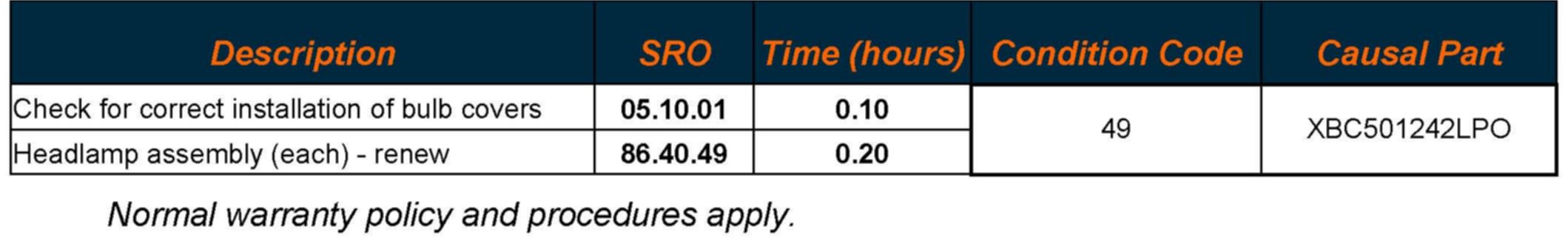 Headlamp Condensation - Inspection and Repair Procedure