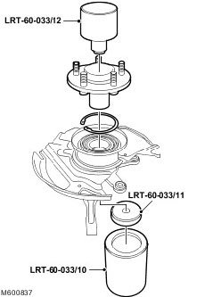 ^ Apply suitable sealant to the bearing mating surface in the wheel knuckle for half its length.