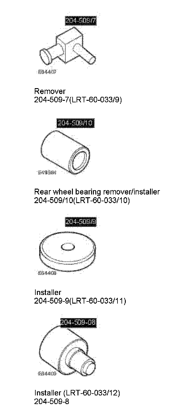 8. Using the special tools, press out the rear wheel bearing.