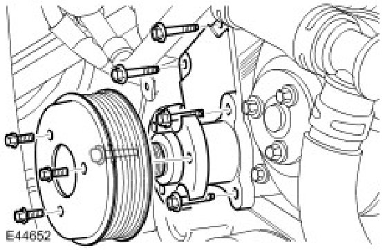 NOTE: Restrain the pulley to aid the removal of the bolts.