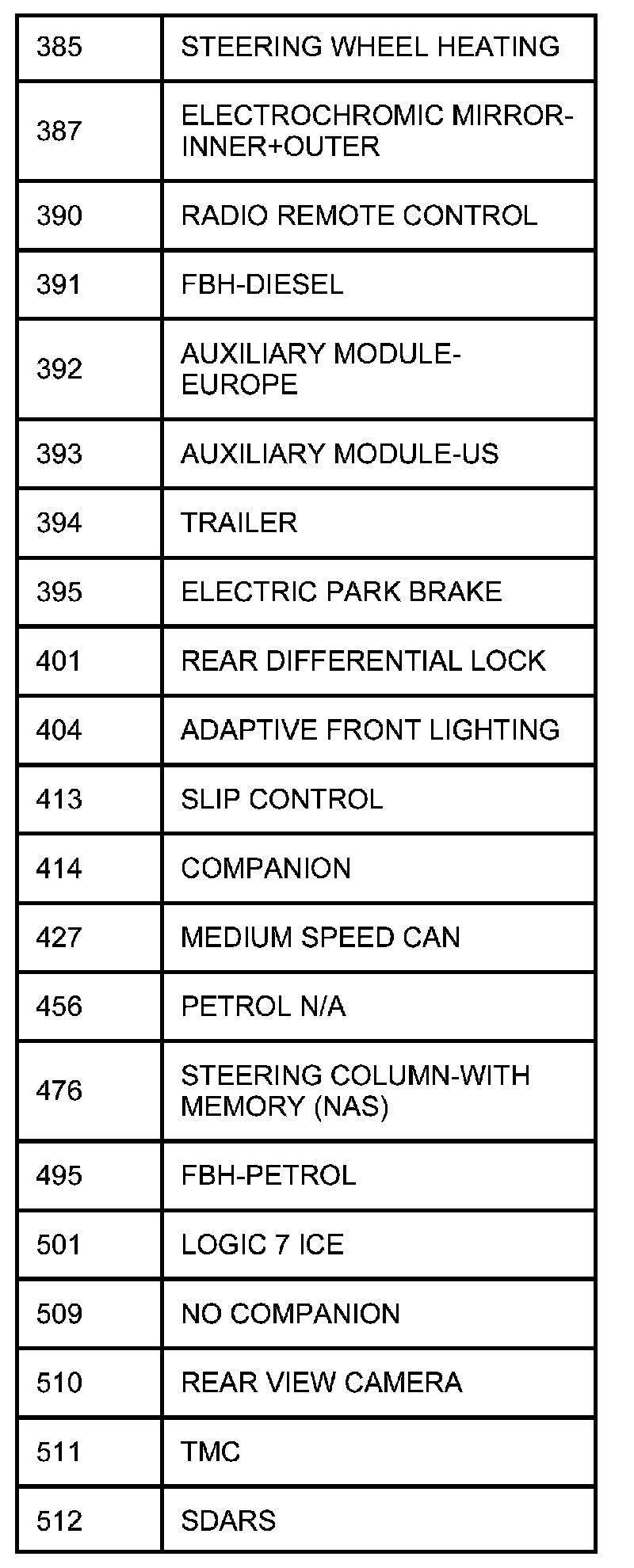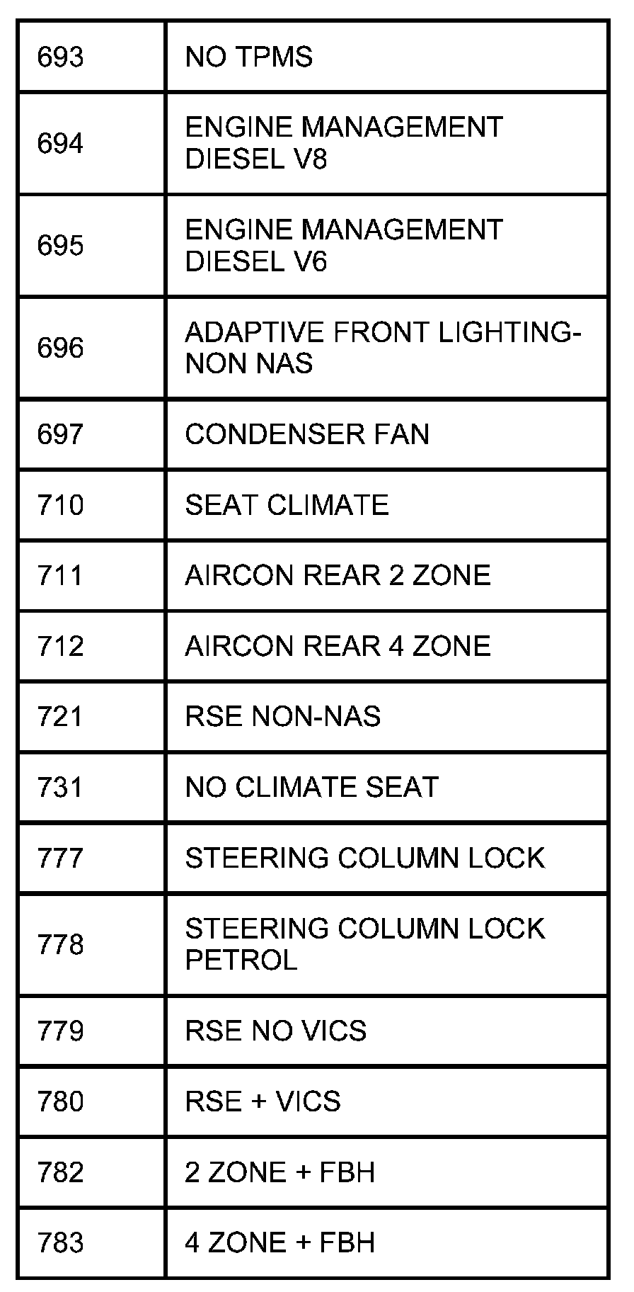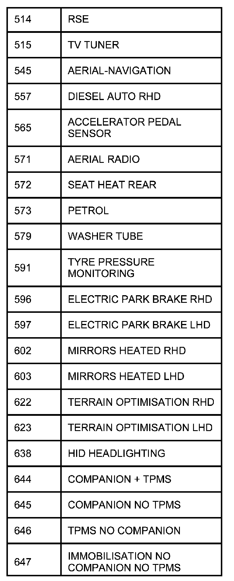 The following table contains a list of circuit (Cct) reference numbers against a description of the applicable model or option. This information should be used in conjunction with the connector pin-out tables to determine the wire configuration of the vehicle under test.